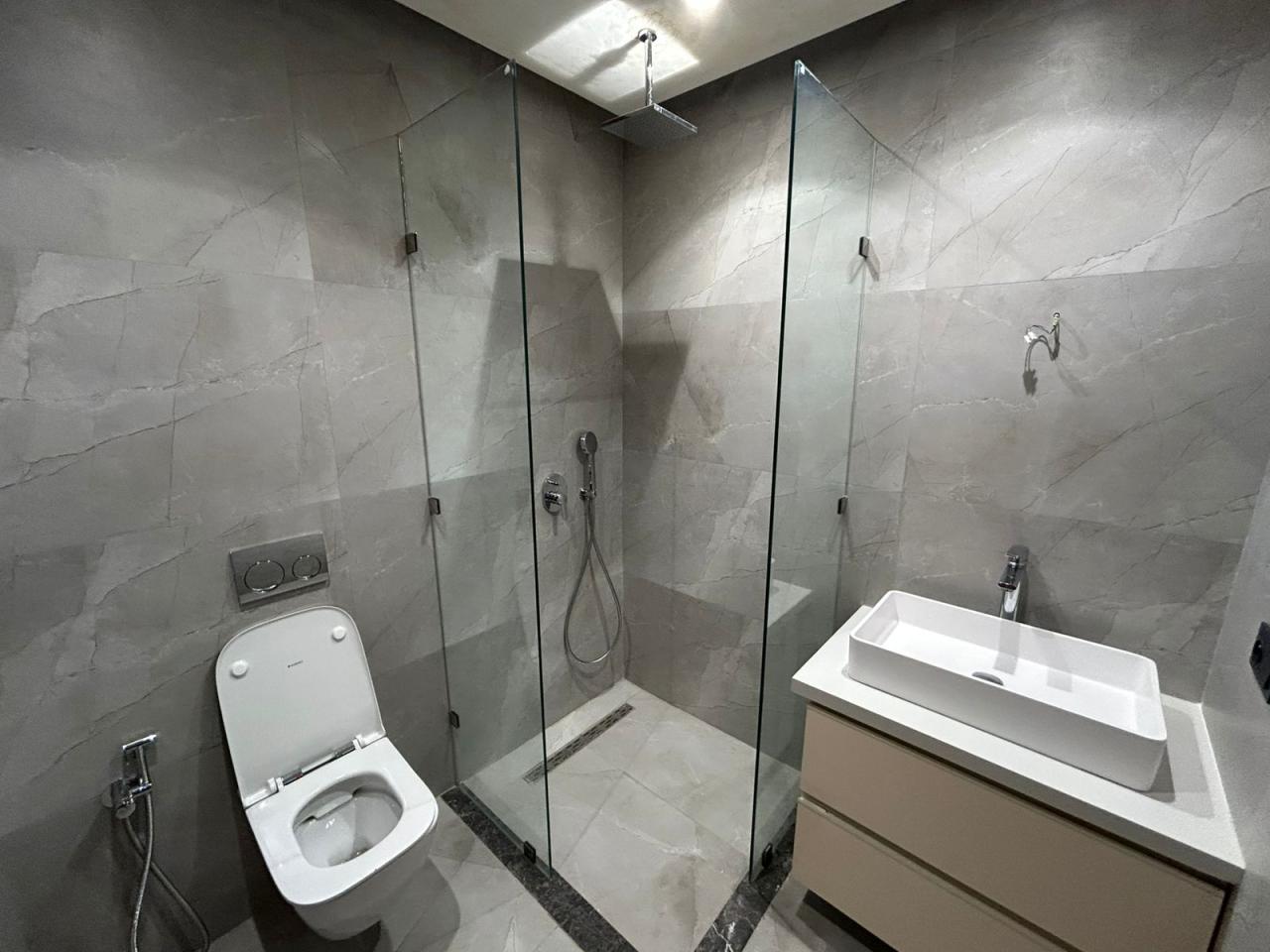 The modern kitchen combines functionality with contemporary design, while the two elegant bathrooms provide both comfort and style for everyday living.