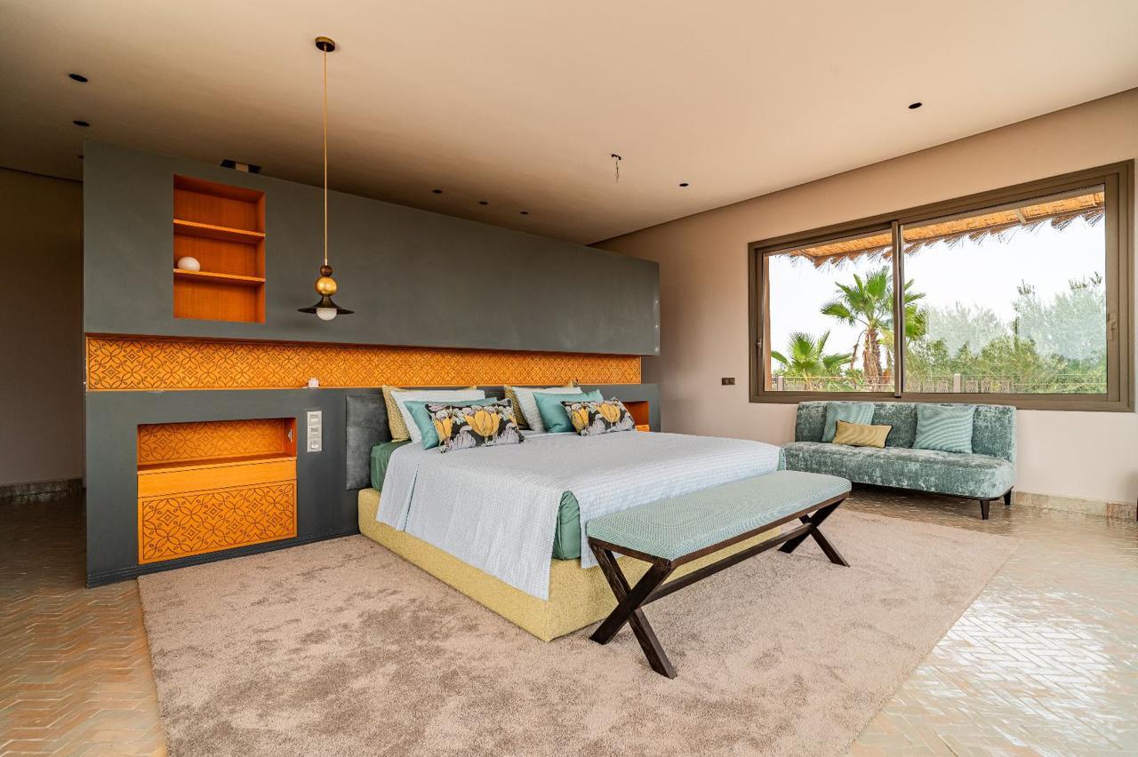 Your real estate agency PRESTIGE GALLERY IMMO offers a stunning modern villa located 25 km from Marrakech on Fes Road, in an exceptional natural environment combining tranquility, space, and greenery.