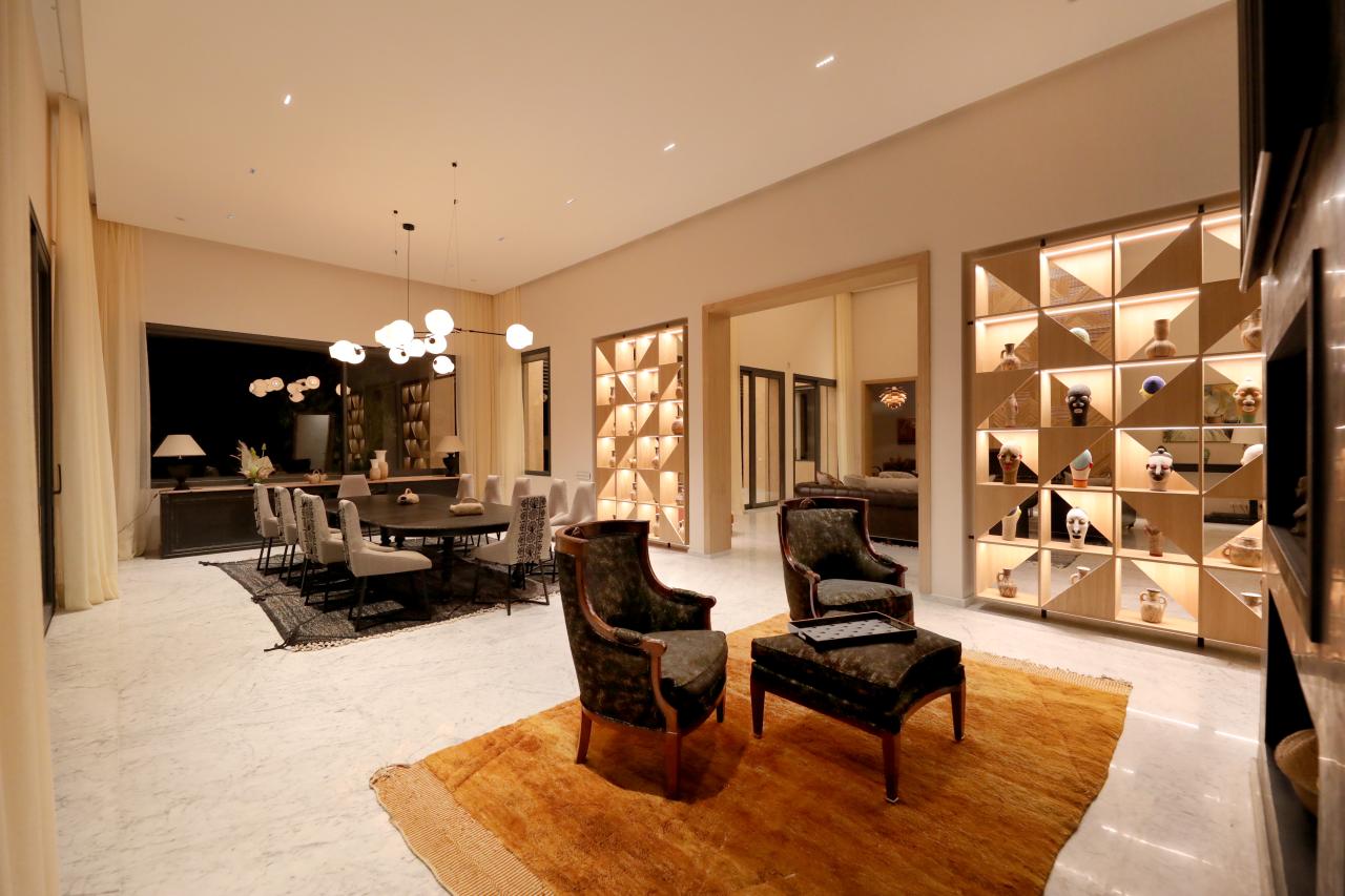 • Modern architecture with premium finishes (marble, zellige, staff plasterwork)