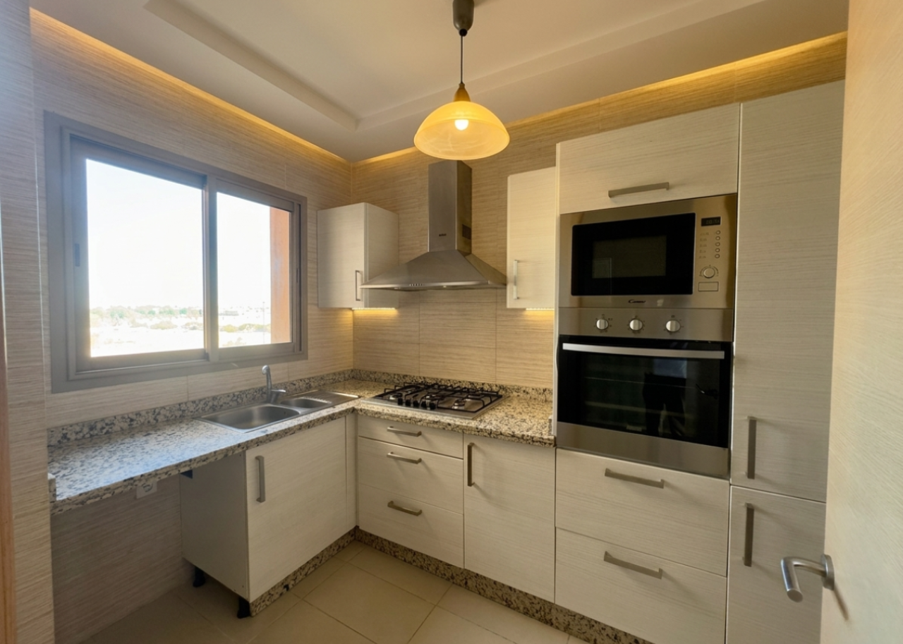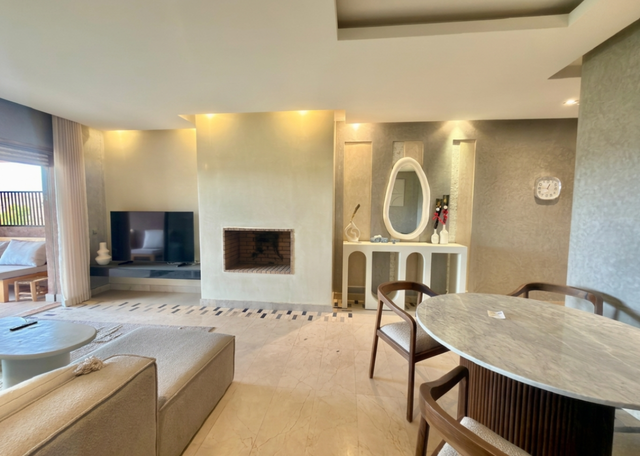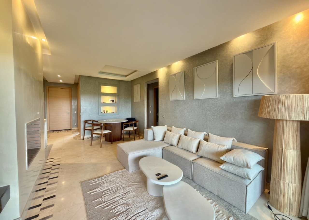 Your real estate agency in Marrakech PRESTIGE GALLERY IMMO is pleased to present to you for long-term rental Superb accommodation of 80 m² 5 minutes from the airport and 10 minutes from the city center and the medina in a quiet, secure residence with swimming pool.