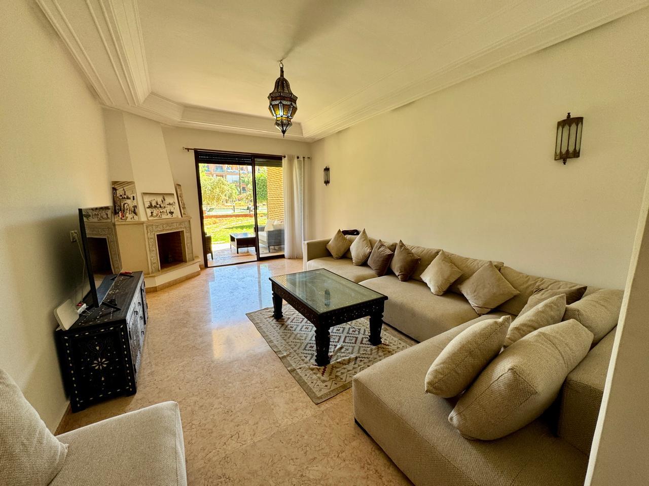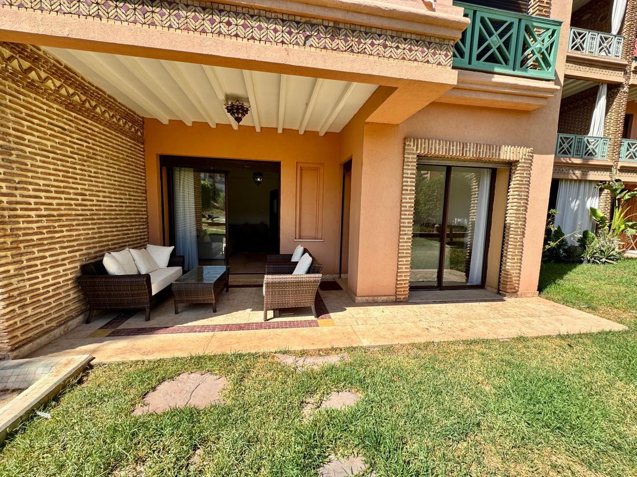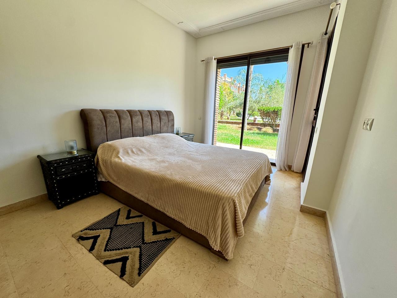 Prestige Gallery Immo, votre agence immobilière à Marrakech à le plaisir de vous présenter ce superbe appartement en location situé au rez de jardin dans une résidence fermée sécurisée avec piscine et espace vert au sein de la prestigieuse avenue Mohamed 6. L'appartement dispose d'une superficie habitable de 107 m² habitables, et il est composé comme suit : 2 chambres, un grand salon-salle à manger avec cheminée, Cuisine entièrement équipée, 2 salles de bain, et enfin une Terrasse.