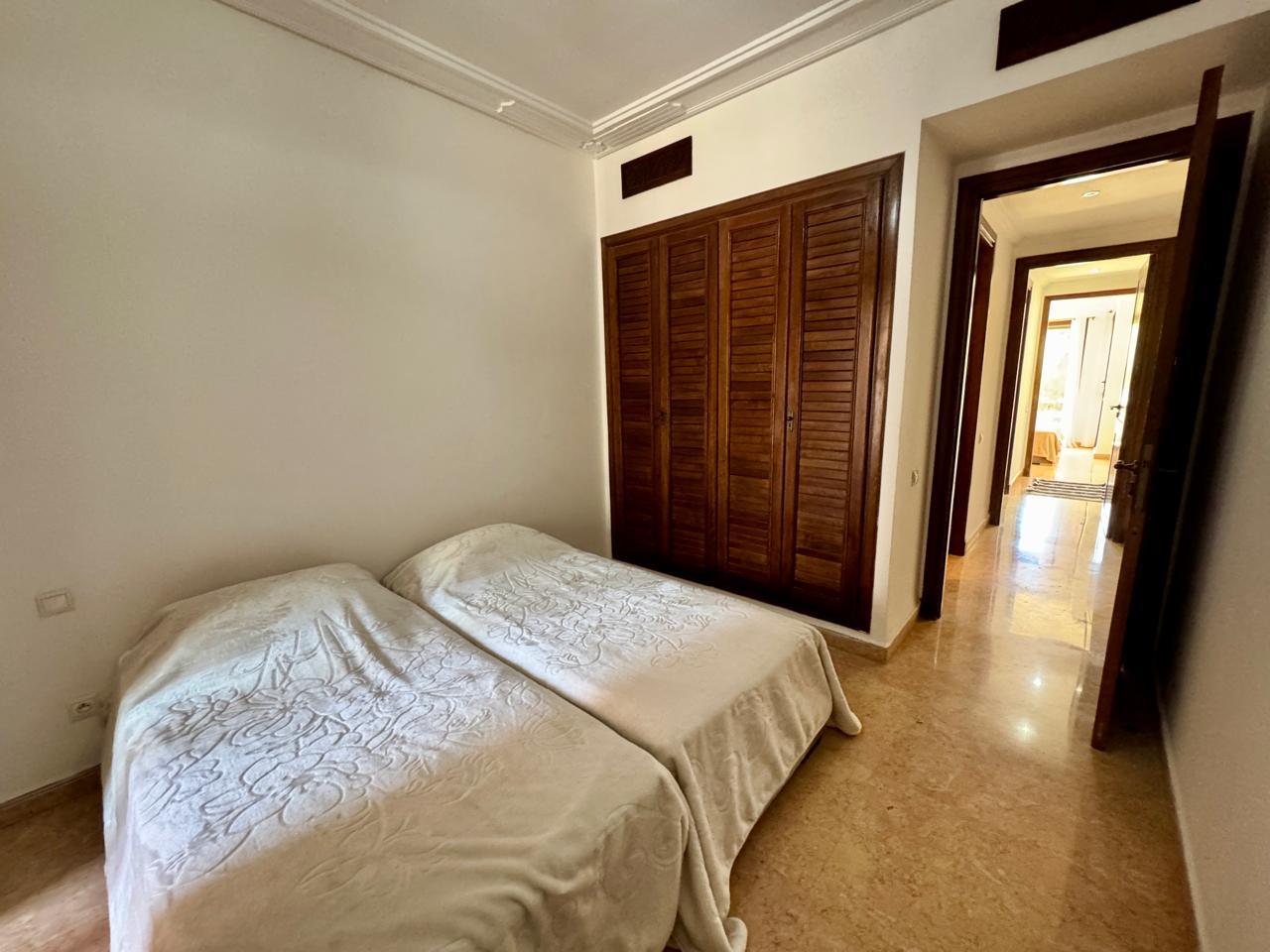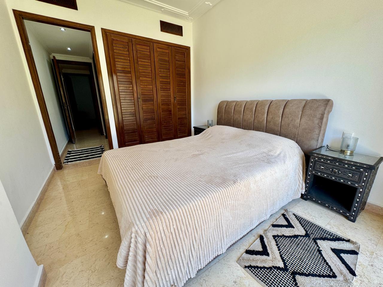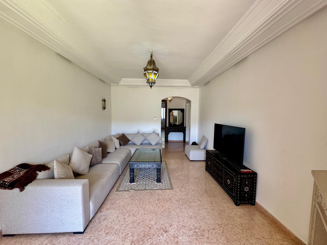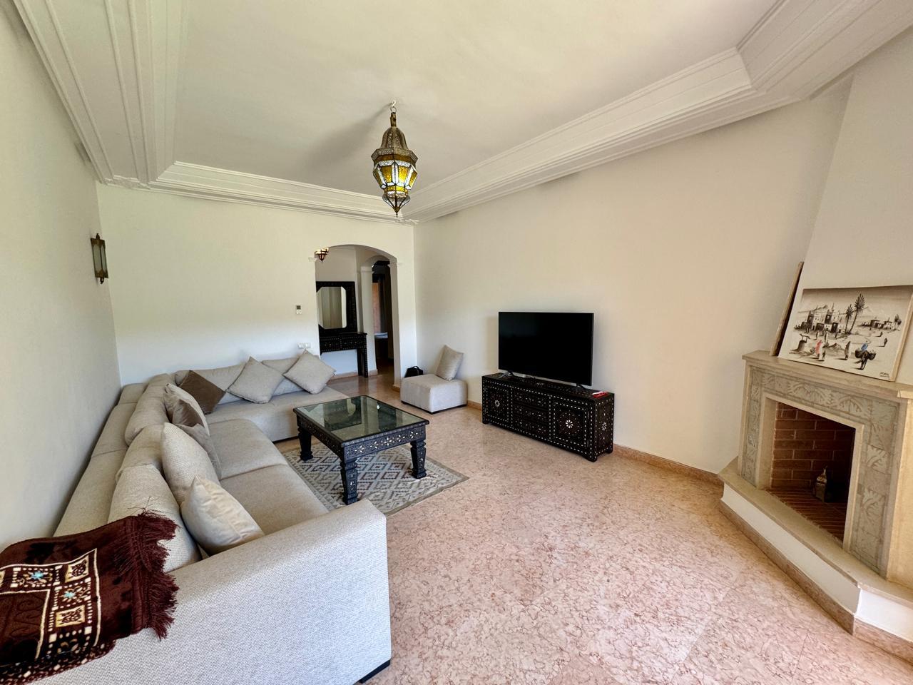 Prestige Gallery Immo, votre agence immobilière à Marrakech à le plaisir de vous présenter ce superbe appartement en location situé au rez de jardin dans une résidence fermée sécurisée avec piscine et espace vert au sein de la prestigieuse avenue Mohamed 6. L'appartement dispose d'une superficie habitable de 107 m² habitables, et il est composé comme suit : 2 chambres, un grand salon-salle à manger avec cheminée, Cuisine entièrement équipée, 2 salles de bain, et enfin une Terrasse.