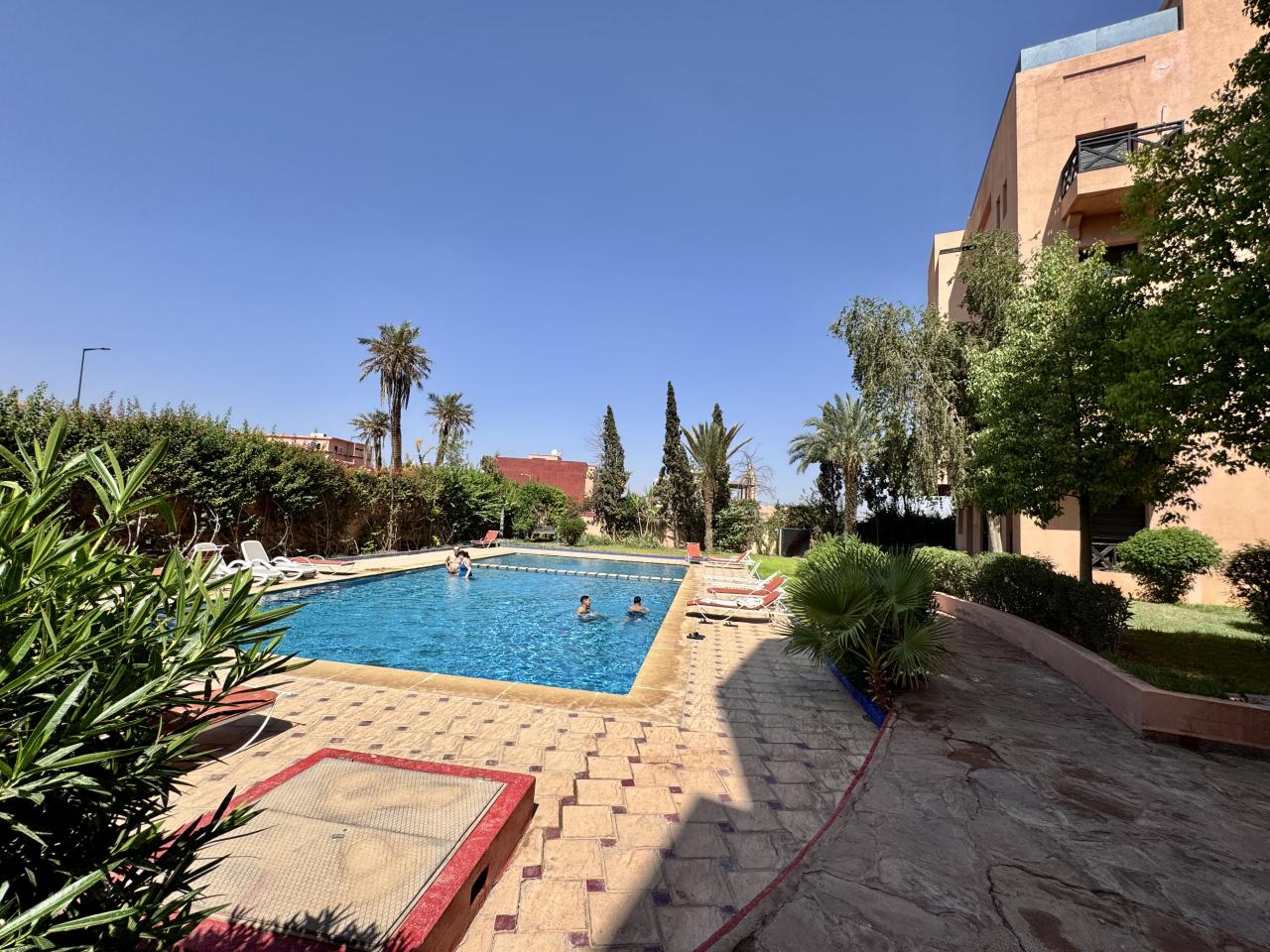 Prestige Gallery Immo, votre agence immobilière à Marrakech, a le plaisir de vous présenter ce superbe appartement en location longue durée, situé au 1ᵉʳ étage d’une résidence fermée, sécurisée, avec piscine et espaces verts.