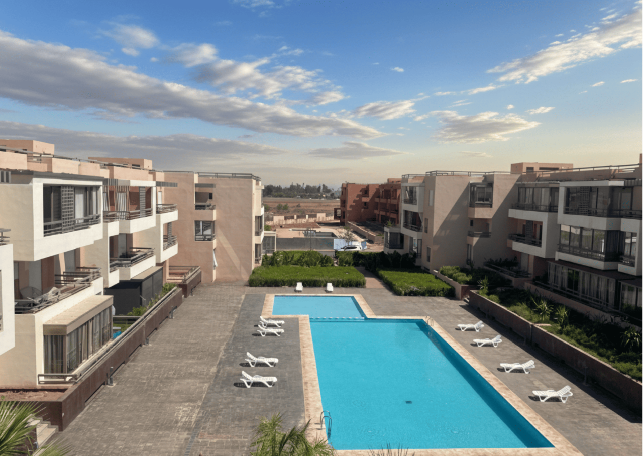 Atouts : Résidence haut standing avec sécurité, ascenseur, piscines et proximité immédiate des commodités de l’avenue Mohamed VI.