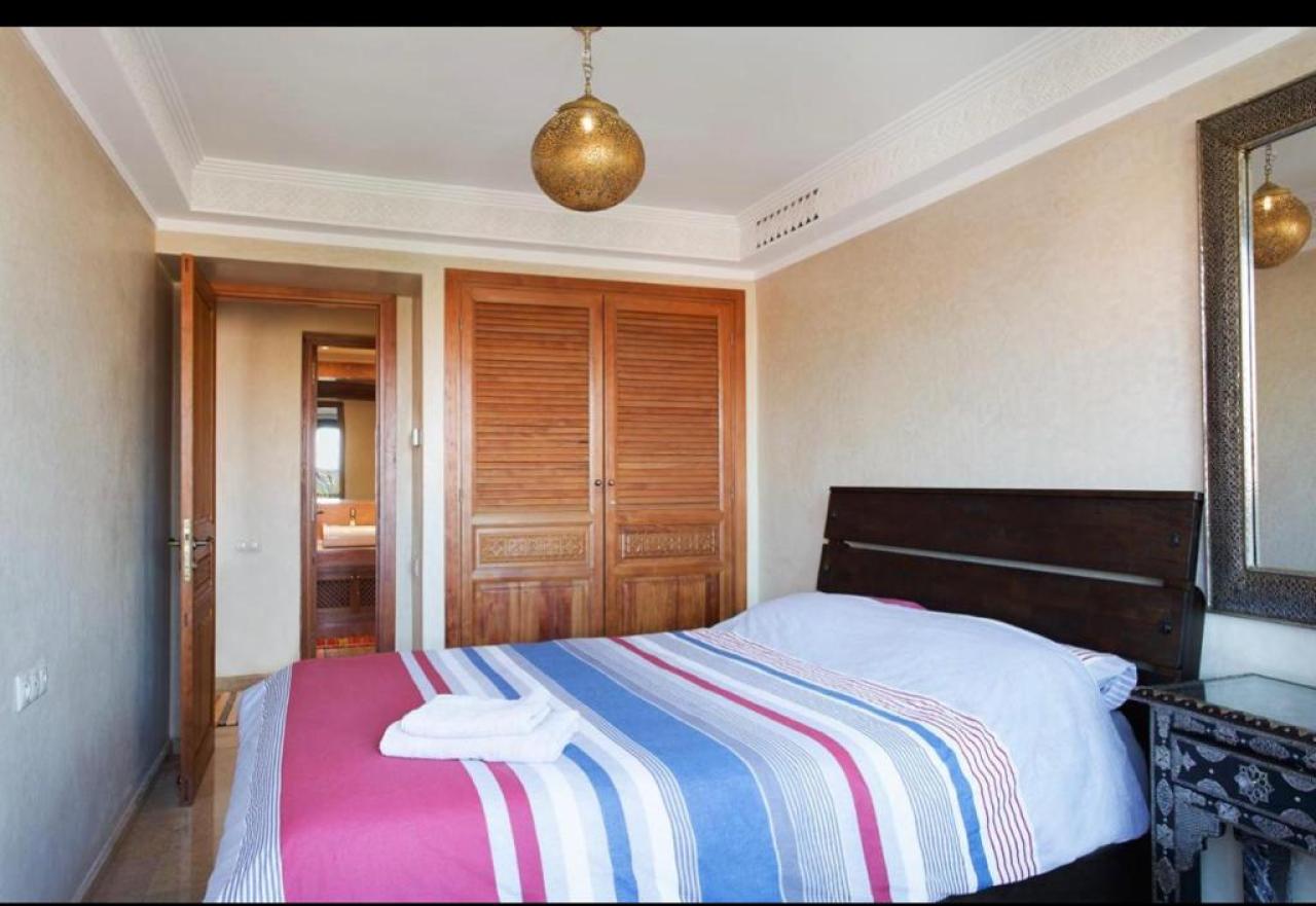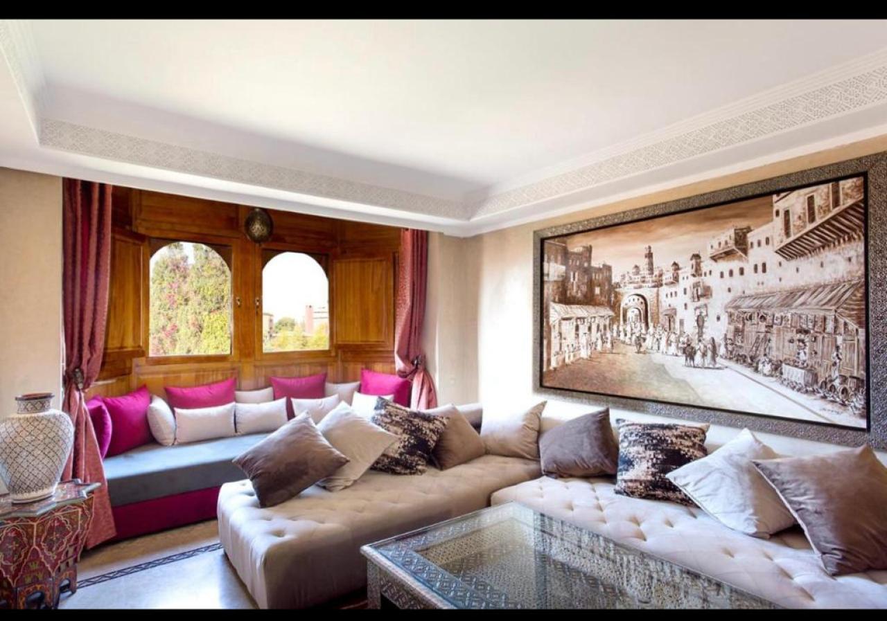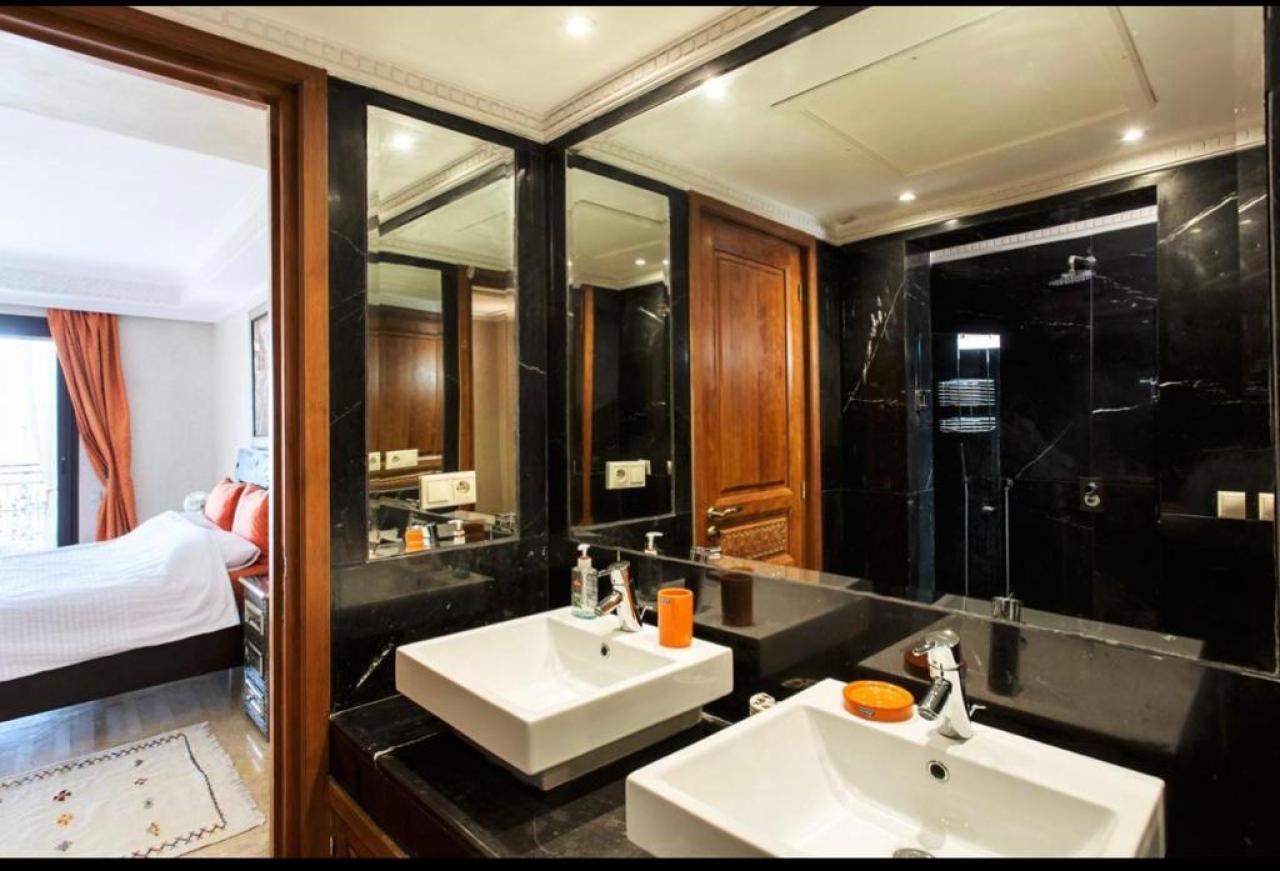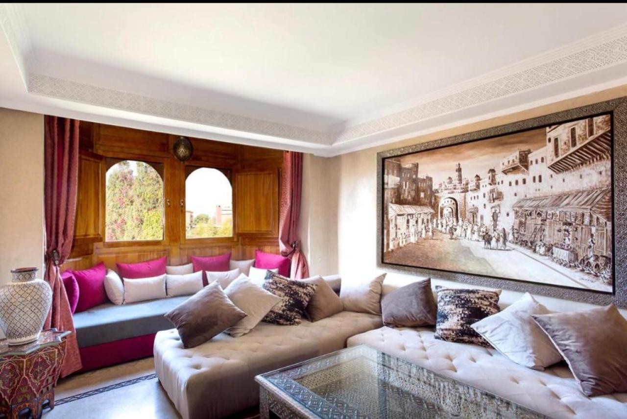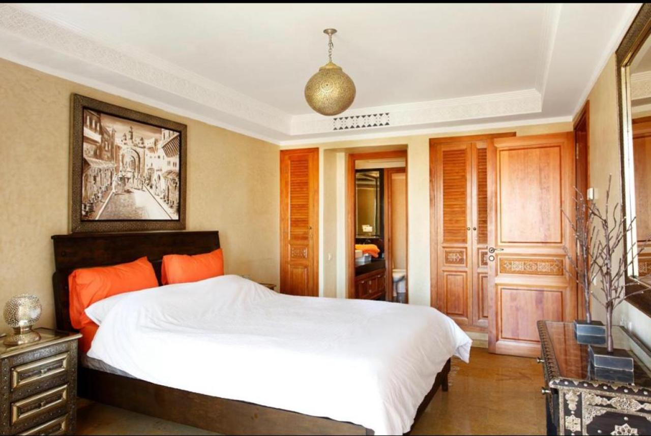 Cet appartement offre un cadre de vie prestigieux et confortable, idéal pour ceux qui recherchent une location à Marrakech Hivernage dans un environnement calme et raffiné.