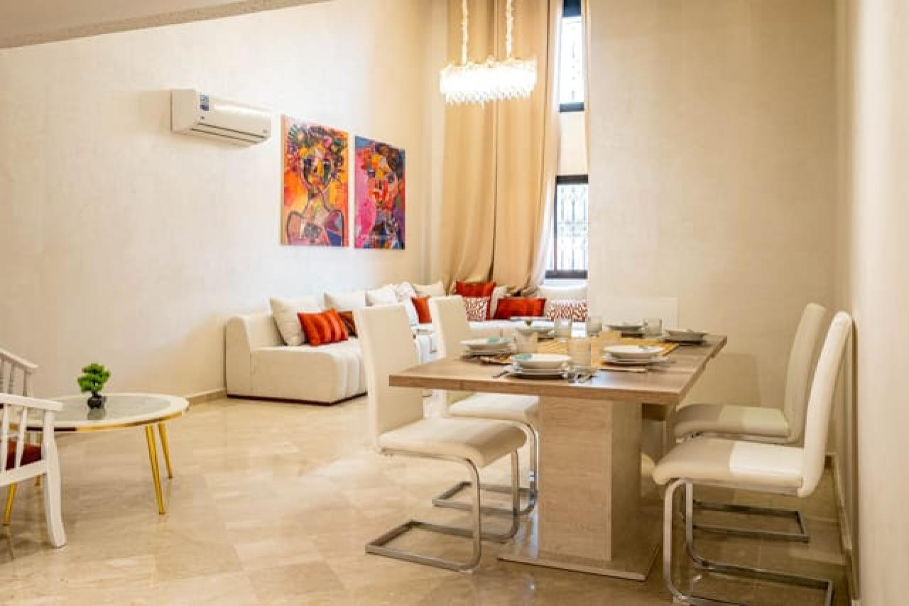 PRESTIGE GALLERY IMMO, votre agence immobilière à Marrakech, a le plaisir de vous présenter ce superbe duplex au Rez-de-chaussée, parfaitement aménagé et prêt à vous accueillir.