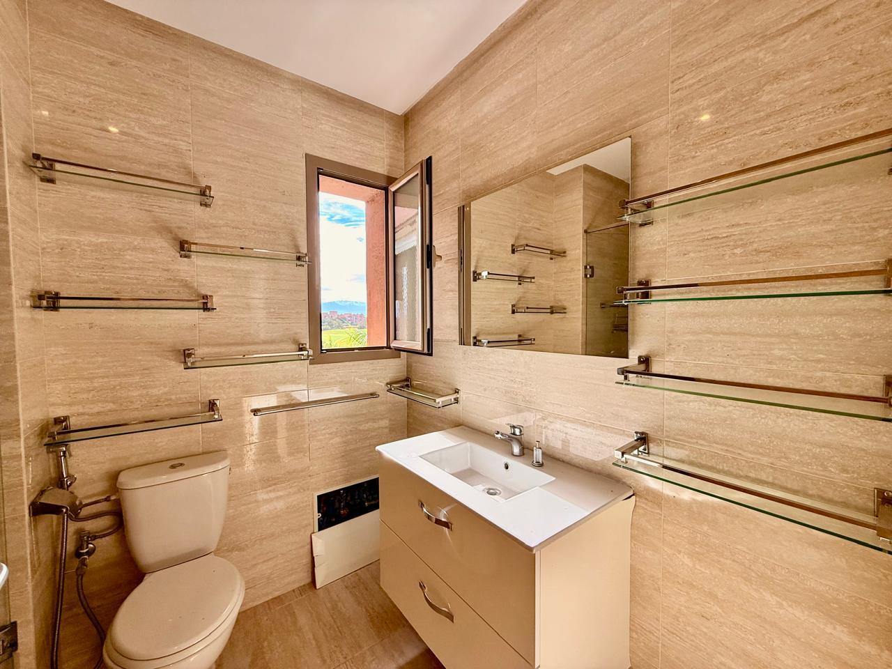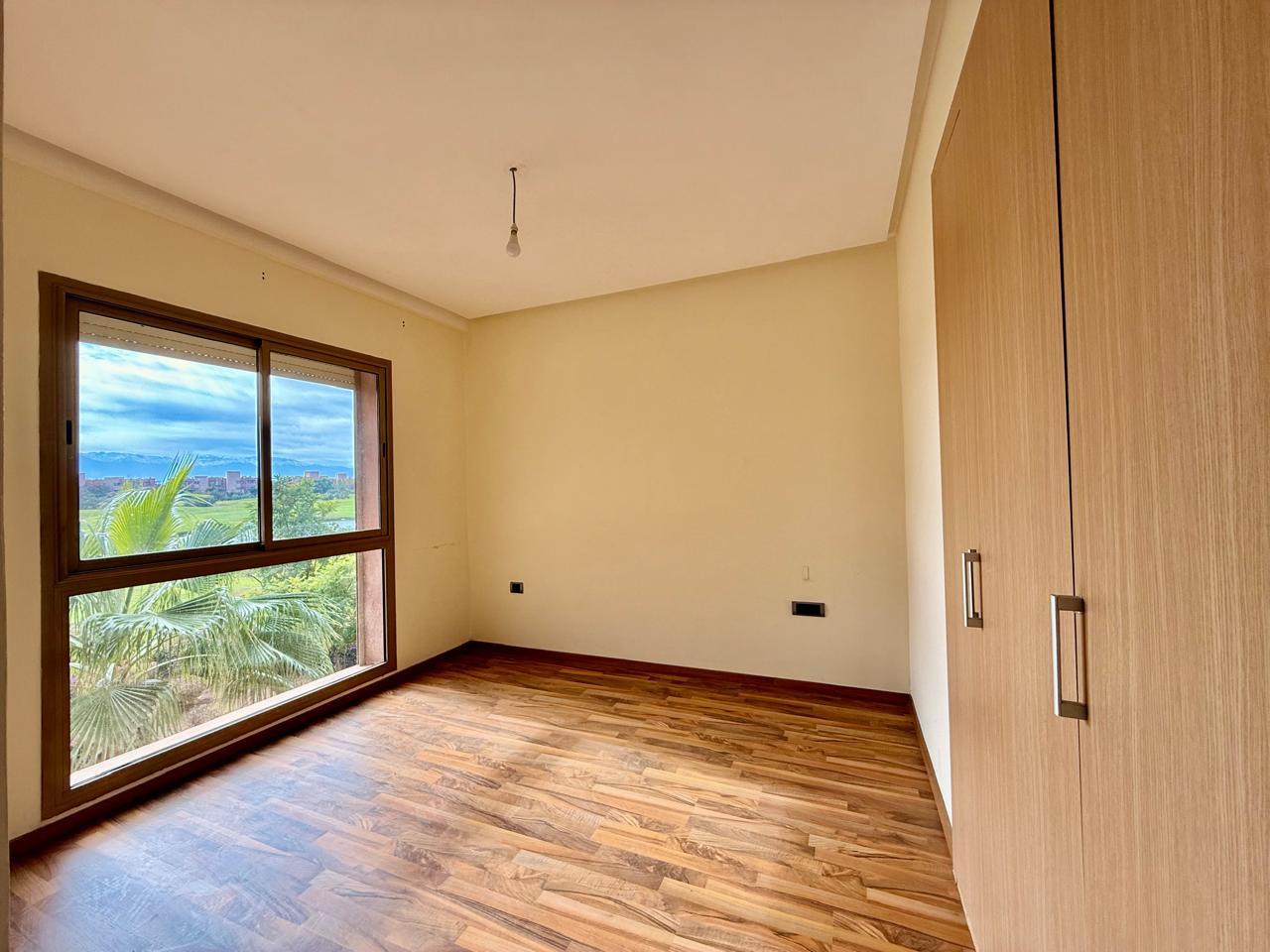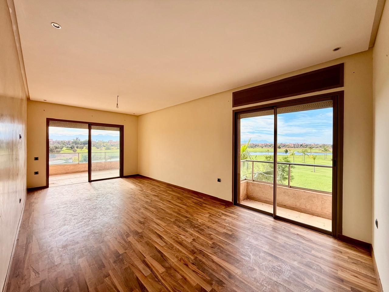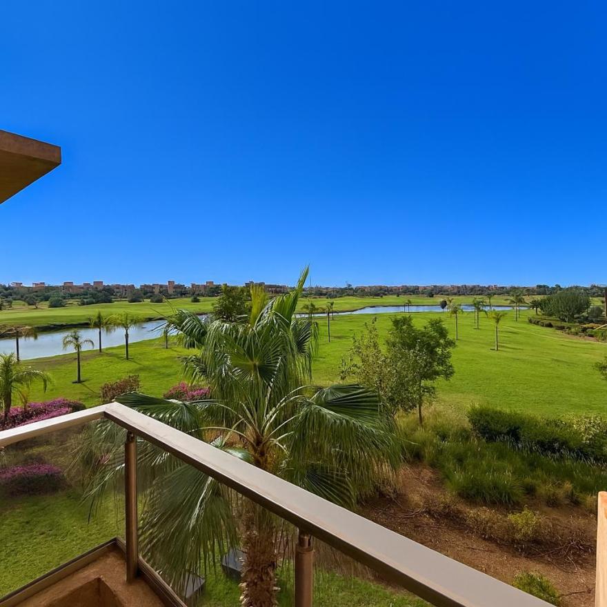 Votre agence immobilière à Marrakech PRESTIGE GALLERY IMMO a le plaisir de vous présenter à la vente un superbe appartement non meublé de 3 chambres situé dans la résidence Prestigia Opale, offrant une vue imprenable à 180° sur le golf et le lac.