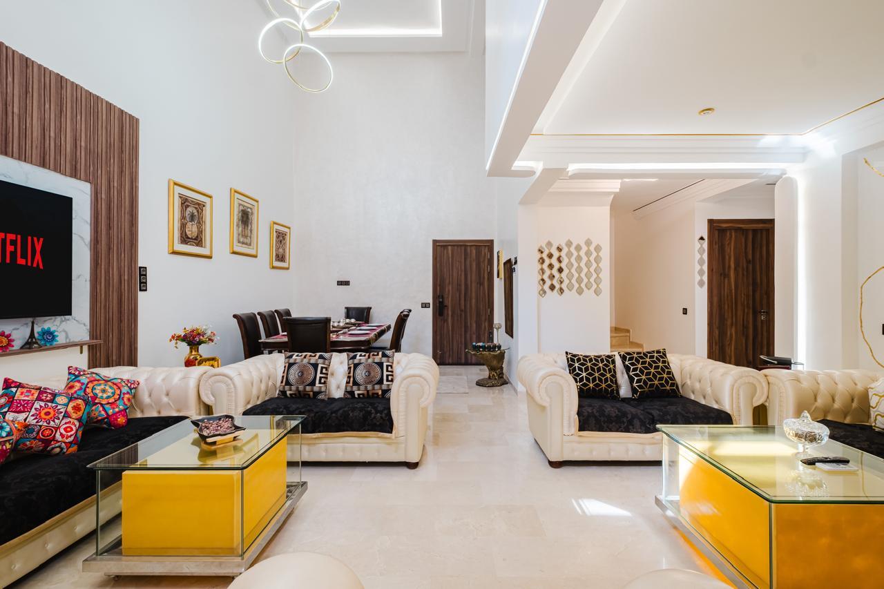 Le duplex propose également un grand salon séjour avec un espace salle à manger, idéal pour recevoir famille et invités dans une ambiance chaleureuse et harmonieuse.