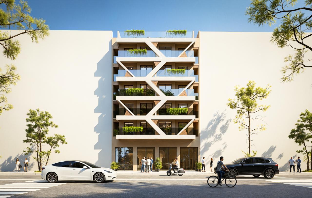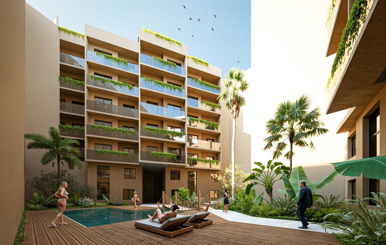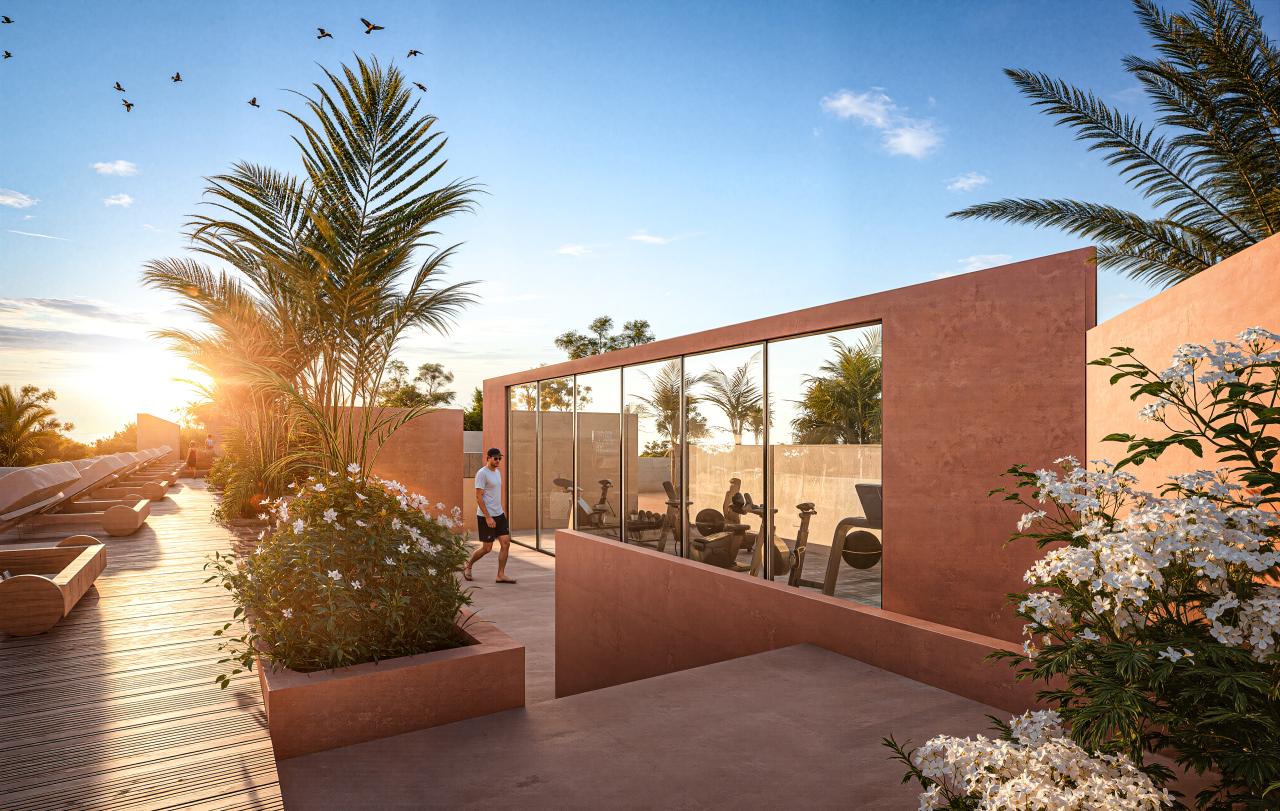 un environnement verdoyant, une architecture contemporaine, des prestations premium et une localisation idéale à proximité immédiate de Guéliz.