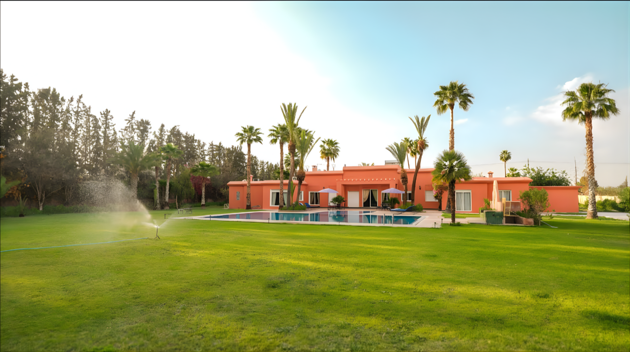 Une villa rare à la location, idéale pour une grande famille ou pour ceux qui recherchent espace, confort, sécurité et élégance, à seulement quelques minutes de Marrakech.
