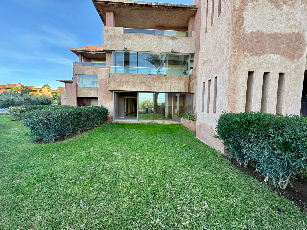 Votre agence immobilière à Marrakech PRESTIGE GALLERY IMMO à le plaisir de vous présenter cet appartement situé en Rez de jardin avec jouissance dans une résidence fermée sécurisée avec piscine, espace vert, Garage, etc.