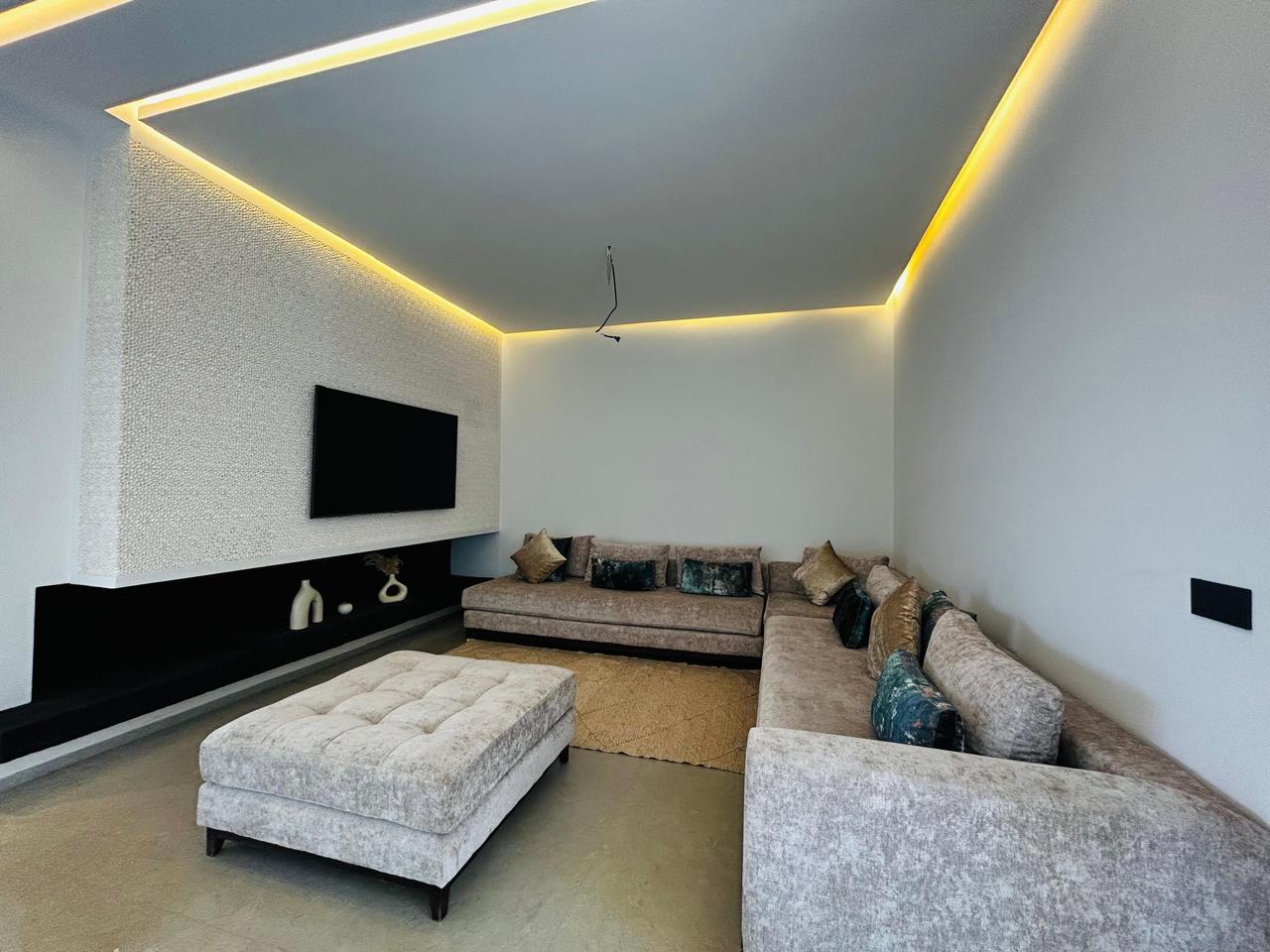 Implantée sur un terrain de 400 m², cette villa développe une surface construite de 340 m² et offre un cadre de vie raffiné au cœur d’un environnement golfique calme, sécurisé et recherché.