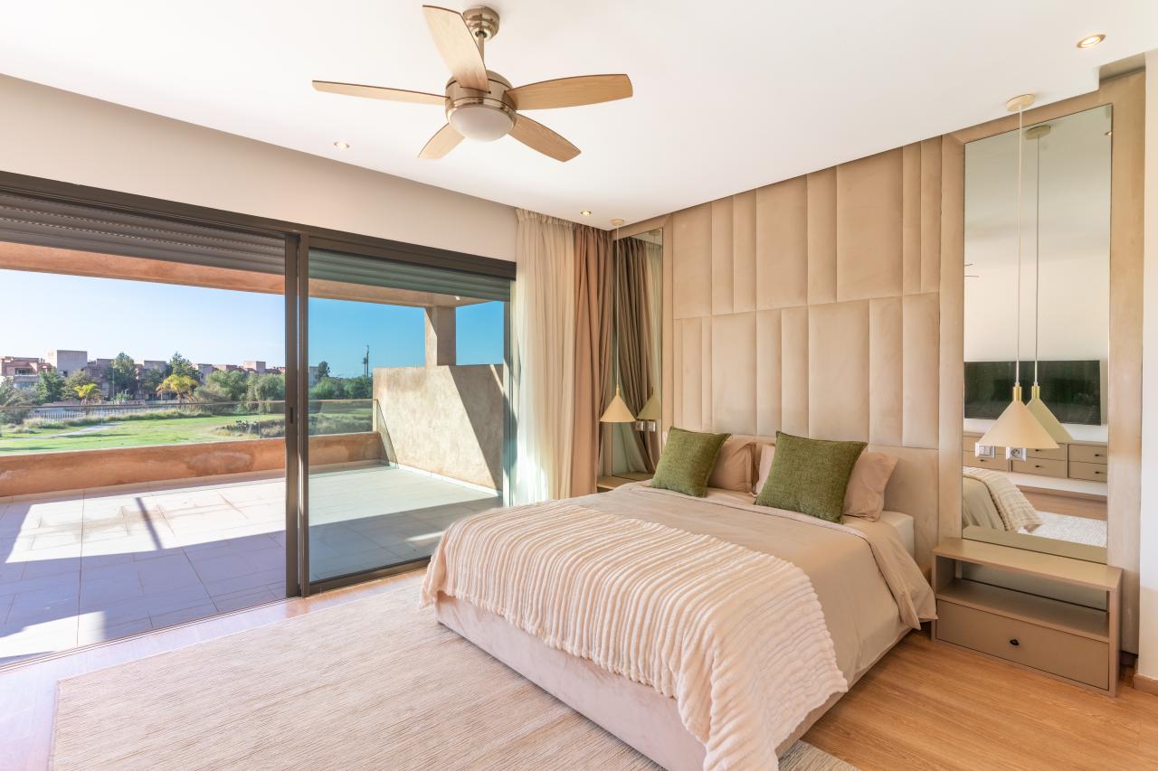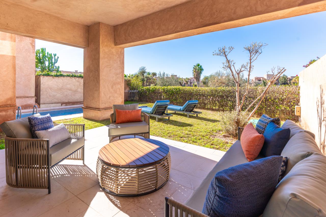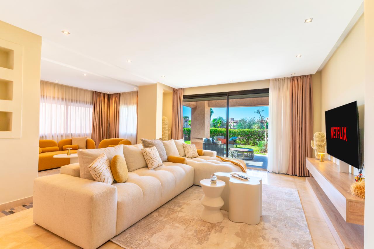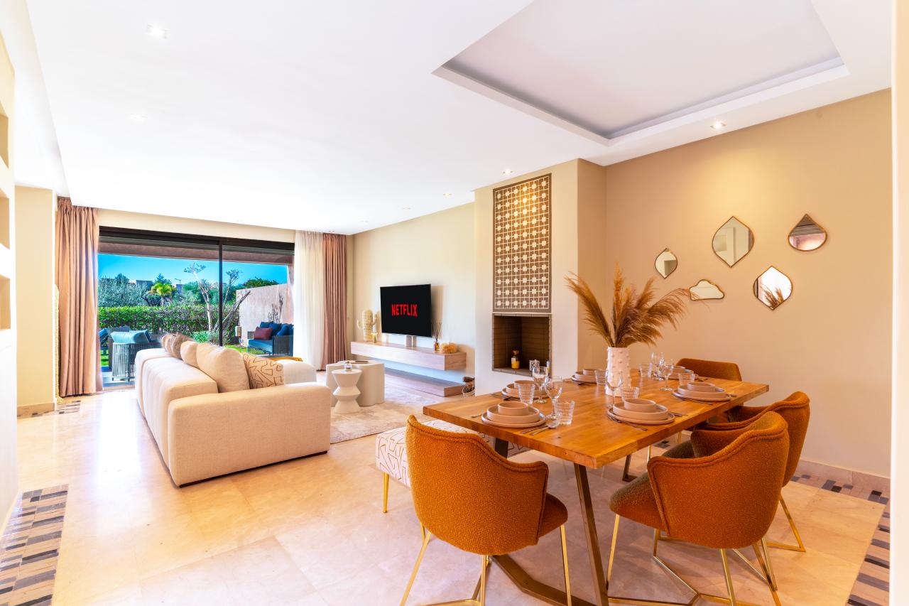 Votre agence immobilière PRESTIGE GALLERY IMMO vous propose une très belle villa moderne meublée, disponible en location longue durée, située au sein d’une résidence golfique à quelques minutes du centre-ville de Marrakech.