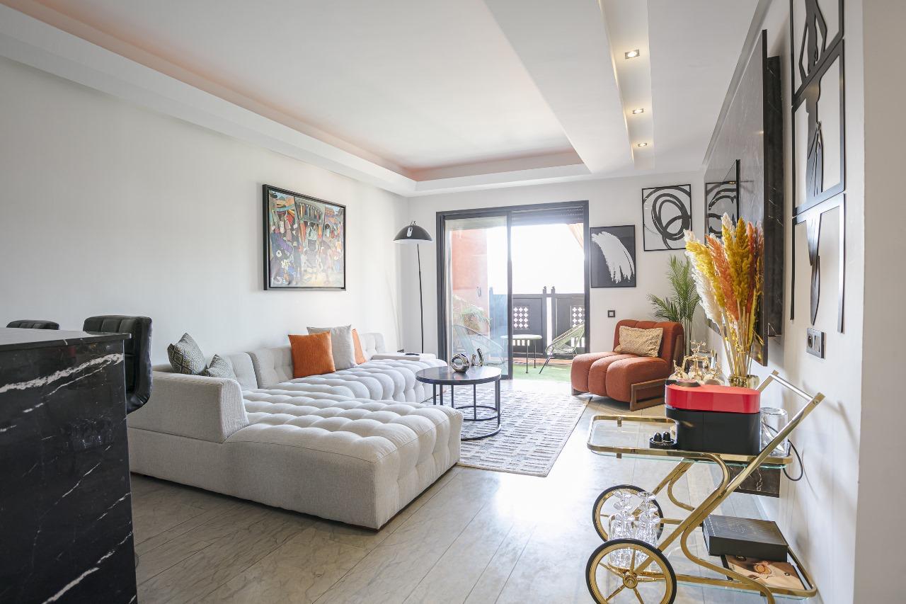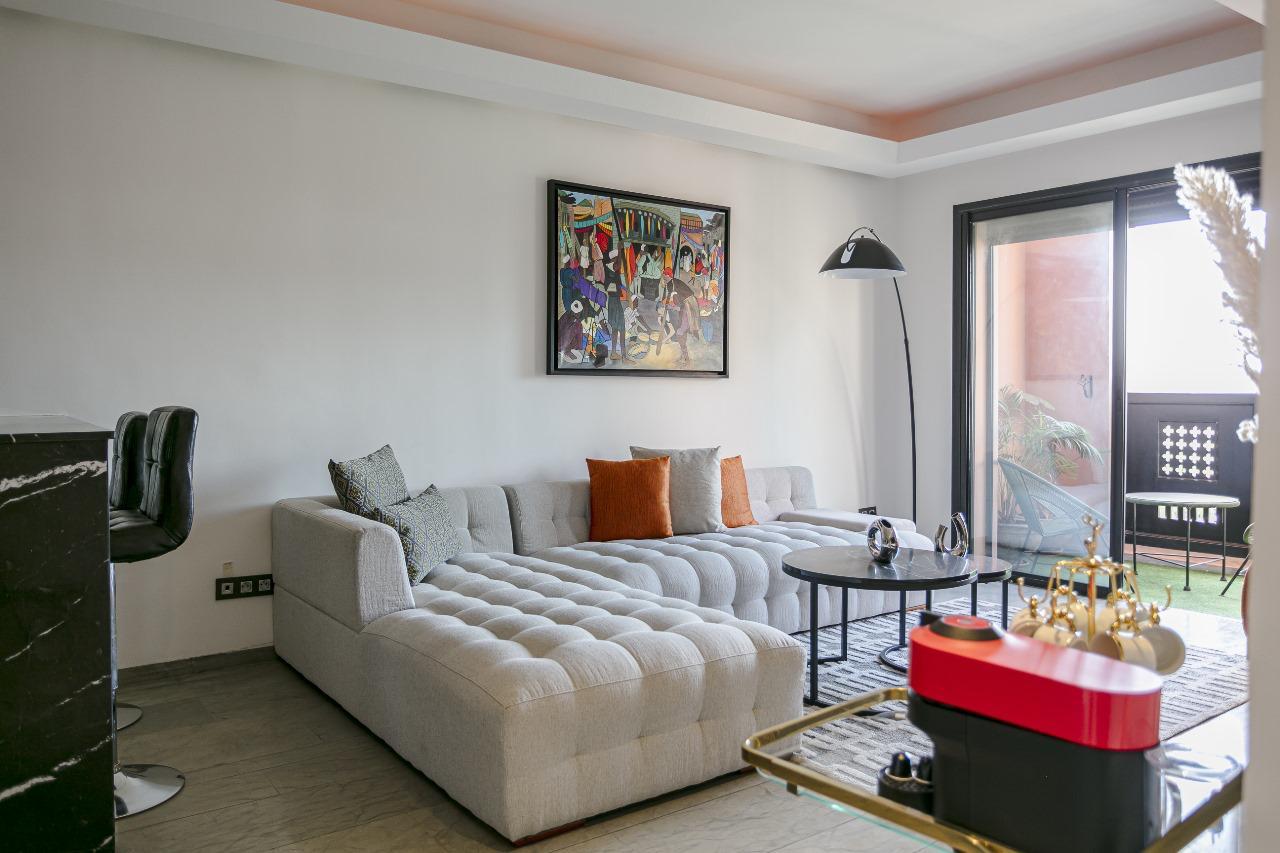 Prestige Gallery Immo vous propose ce studio agréable à louer au cœur de Guéliz, l’un des quartiers les plus recherchés de Marrakech, à proximité immédiate des commerces, restaurants et commodités.