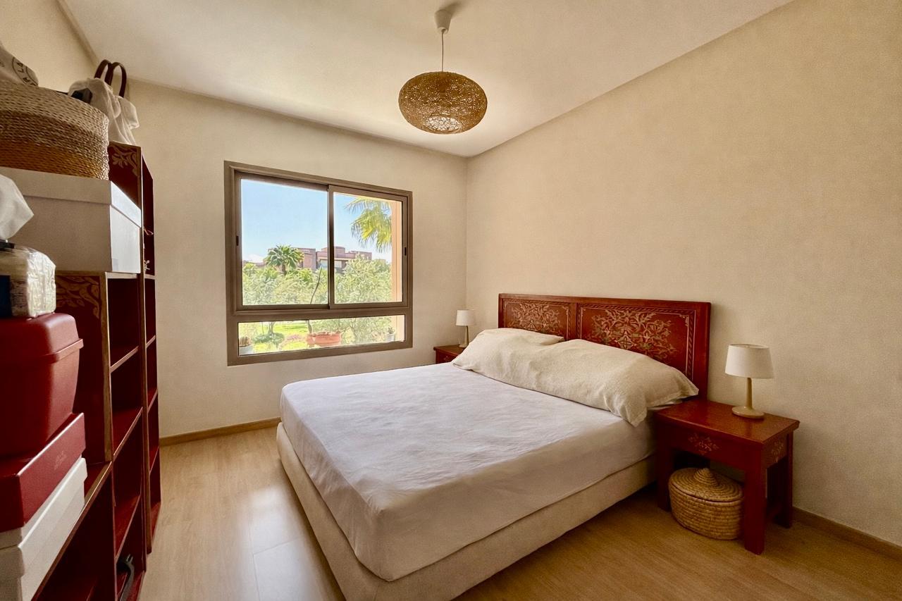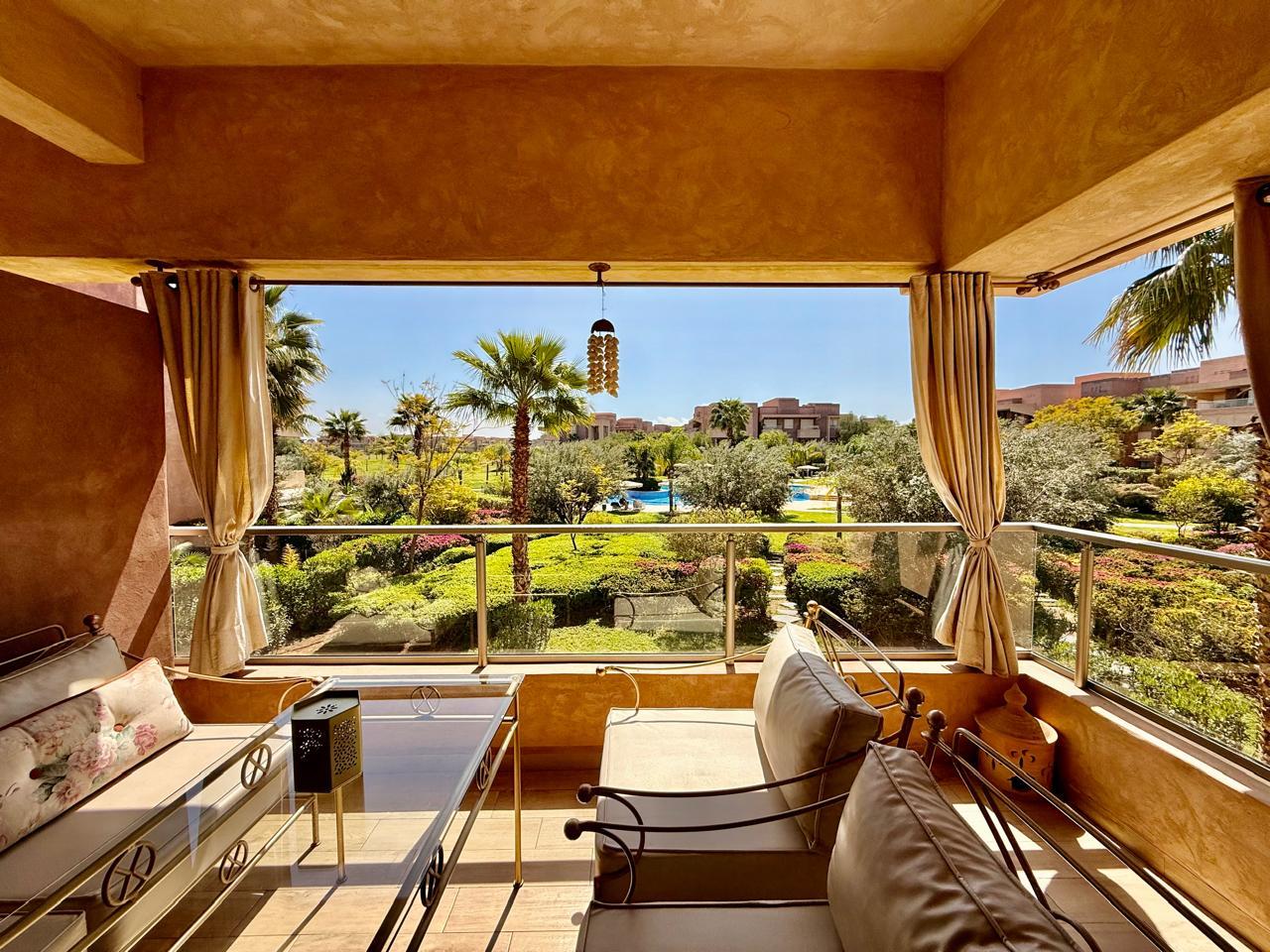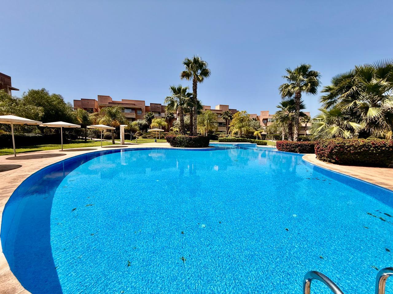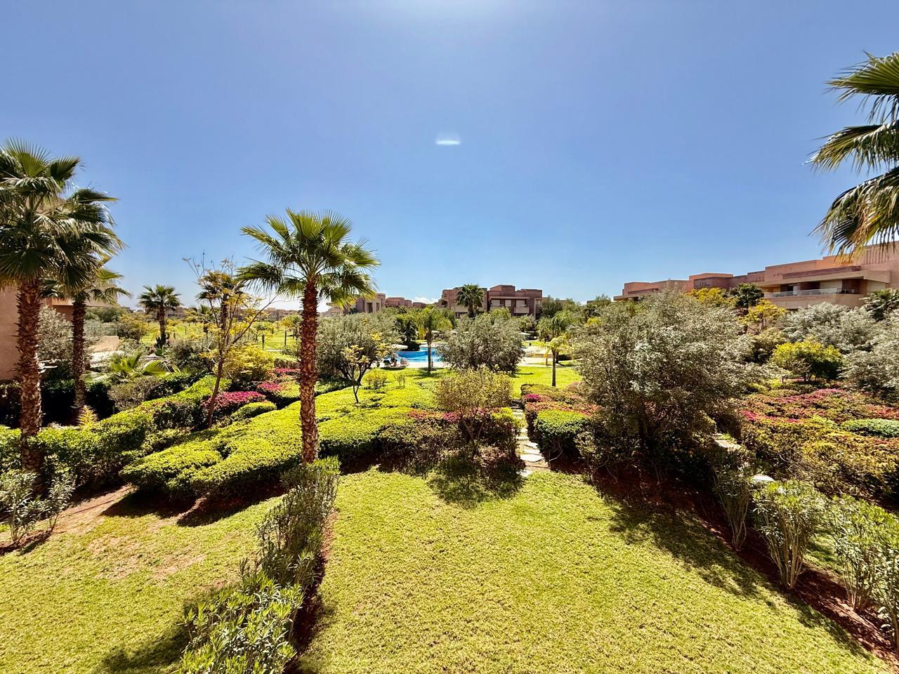 Votre agence immobilière à Marrakech PRESTIGE GALLERY IMMO a le plaisir de vous présenter à la vente ce spacieux appartement situé au 1ᵉ étage dans la résidence fermée sécurisée Prestigia Jade avec piscines, golf et espace verts.