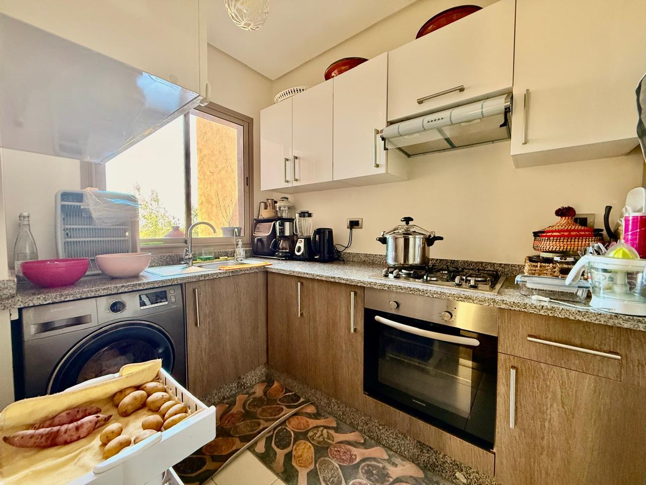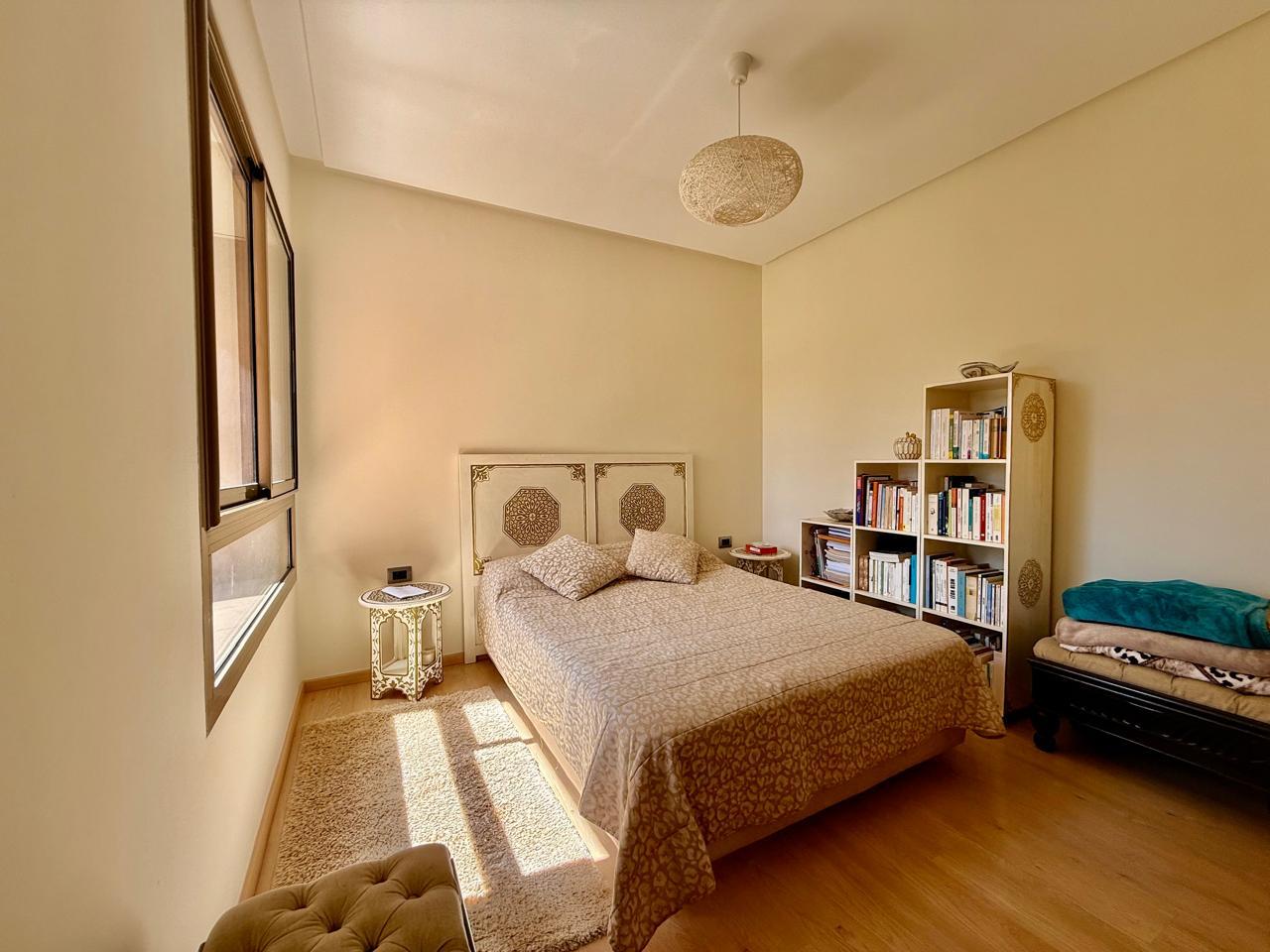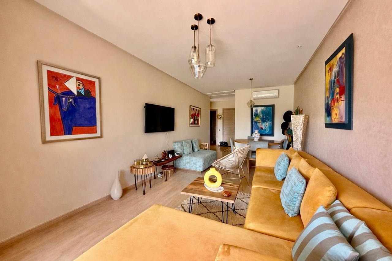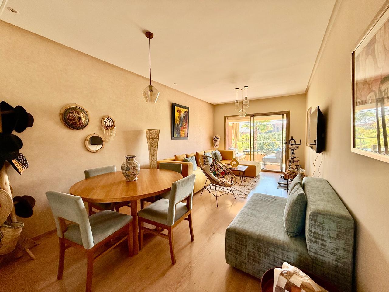 Votre agence immobilière à Marrakech PRESTIGE GALLERY IMMO a le plaisir de vous présenter à la vente ce spacieux appartement situé au 1ᵉ étage dans la résidence fermée sécurisée Prestigia Jade avec piscines, golf et espace verts.