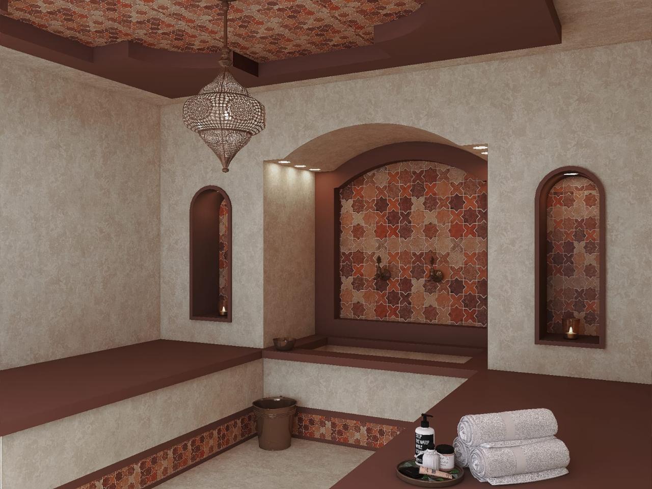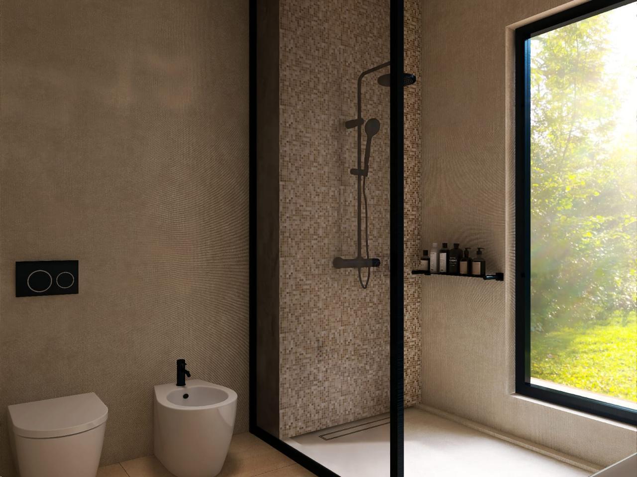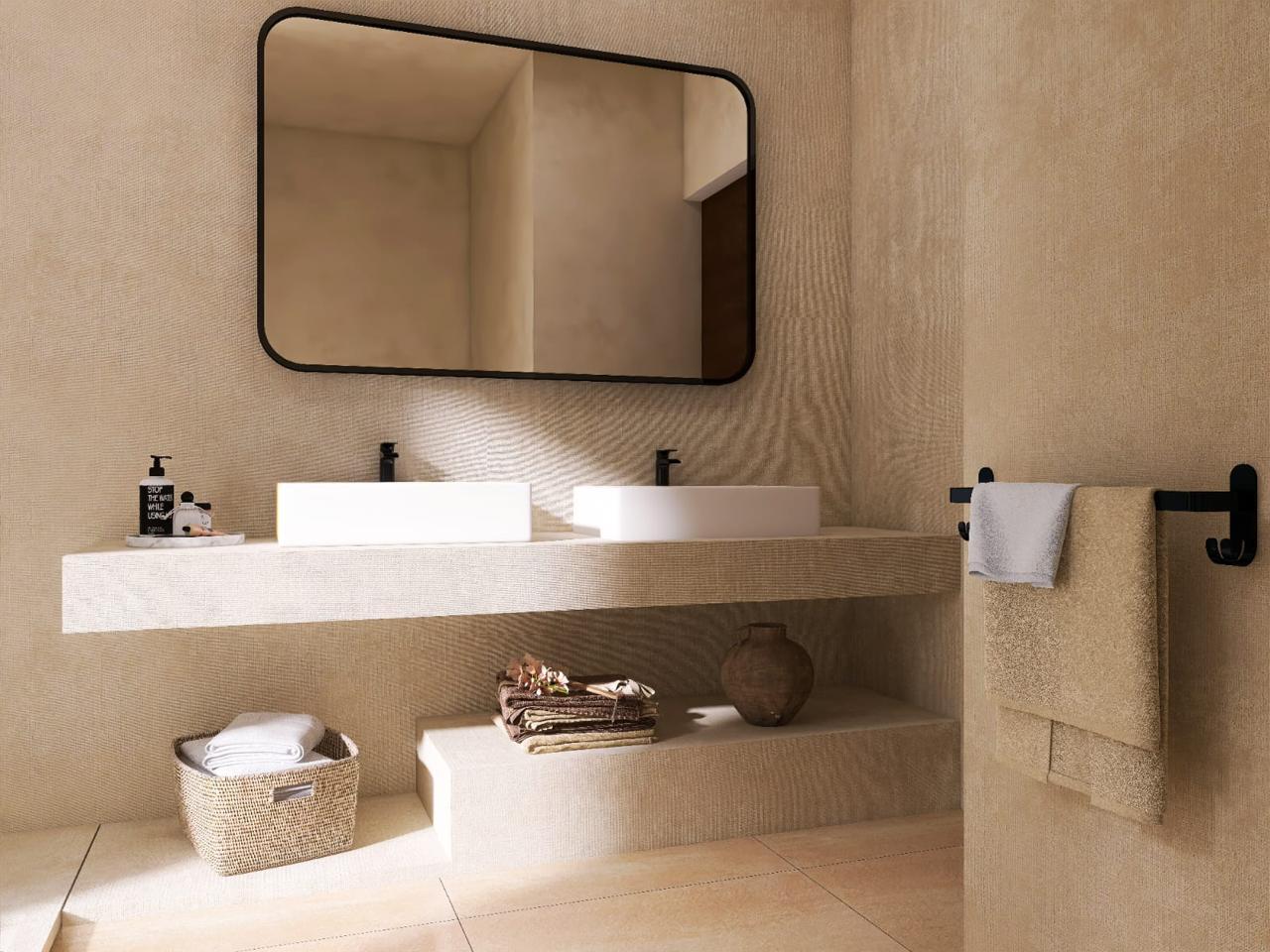 • Sols en microciment, zellige, parquet chêne et pierre de Taza