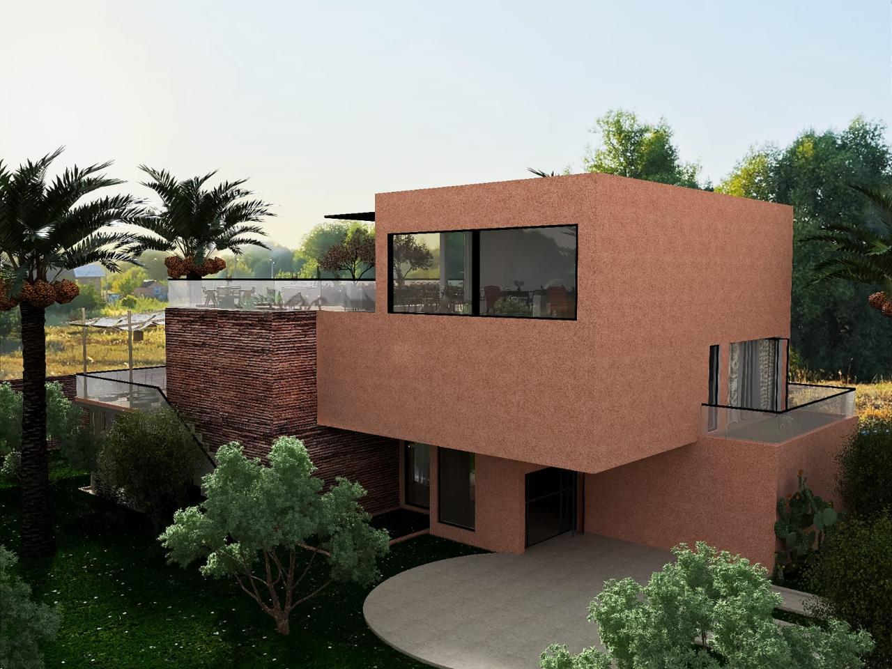 • Architecture cubique contemporaine aux inspirations marocaines